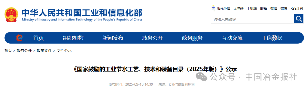 9月18日,中华人民共和国工业和信息化部发布了《国家鼓励的工业节水工艺、技术和装备目录(2025年版)》公示。