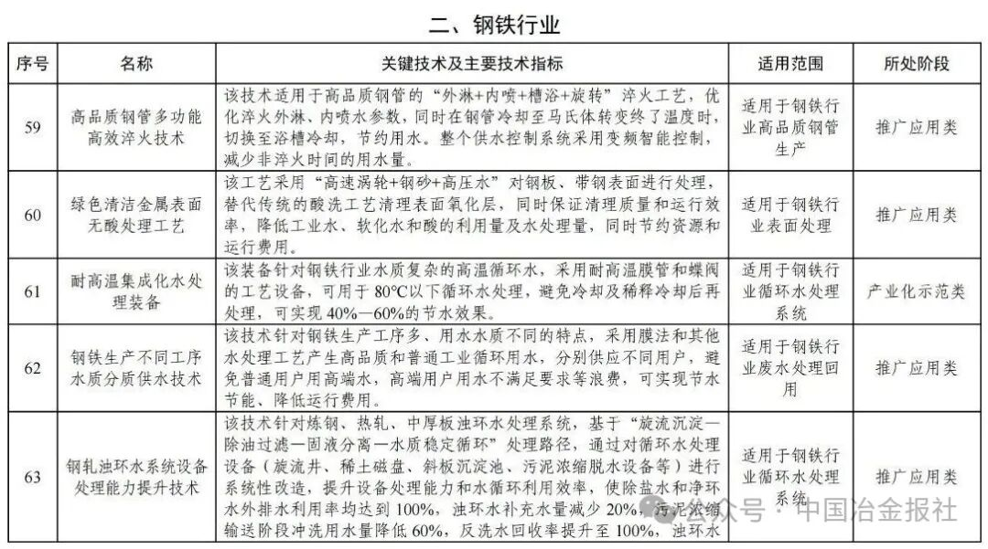 涉及钢铁行业,《国家鼓励的工业节水工艺、技术和装备目录(2025年版)》公示
