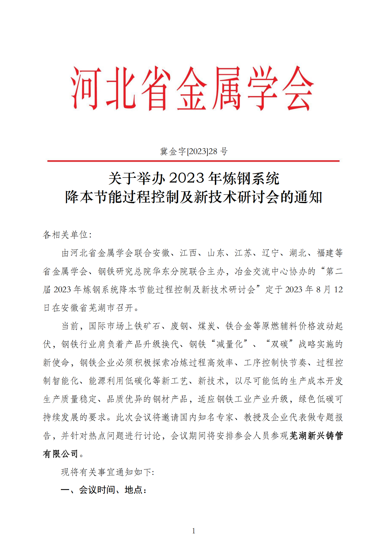 冀金字[2023]28号2023年炼钢系统降本节能过程控制及新技术研讨会通知
