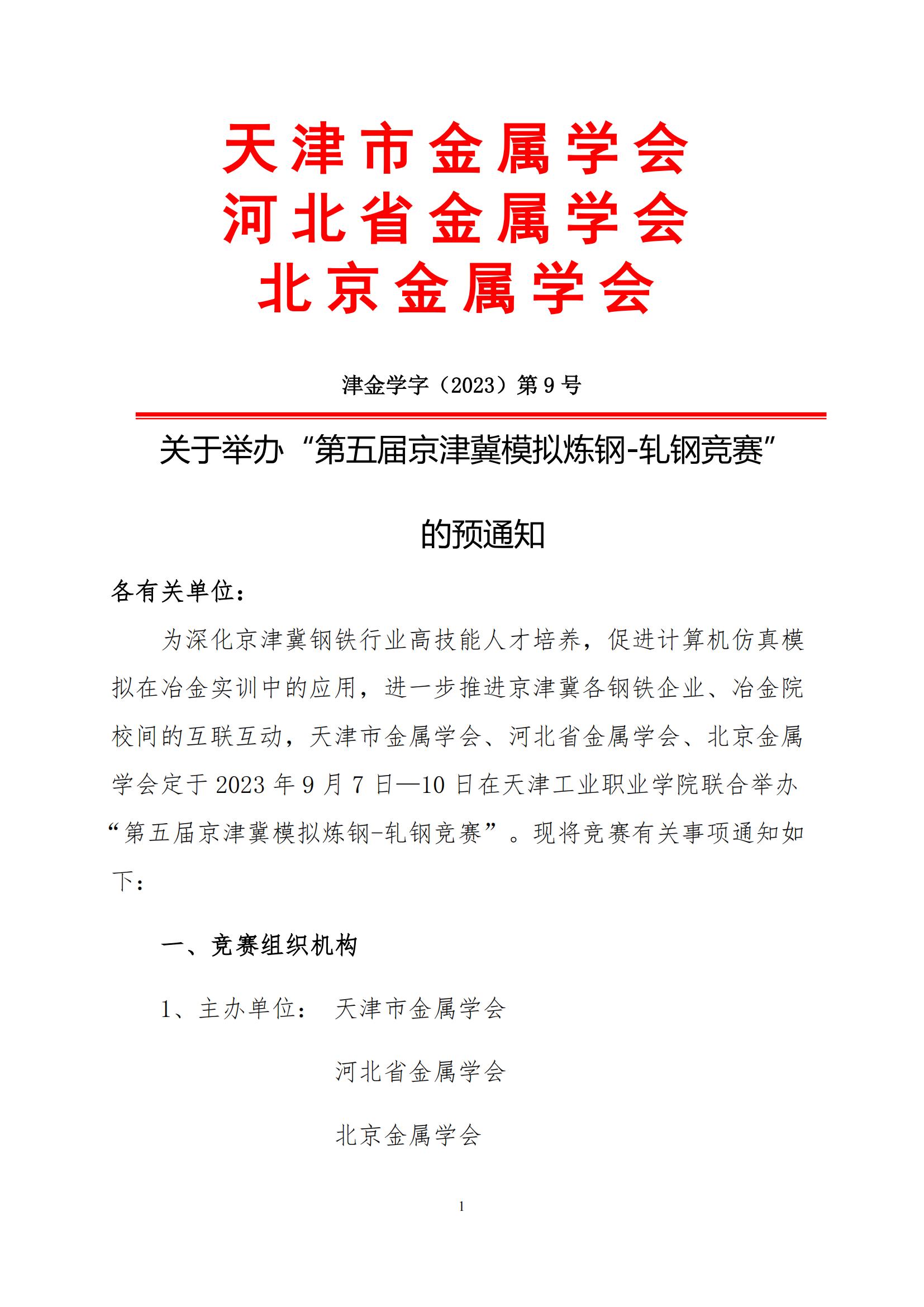 如需下载,请点击:  关于举办“第五届京津冀模拟炼钢-轧钢竞赛”的预通知