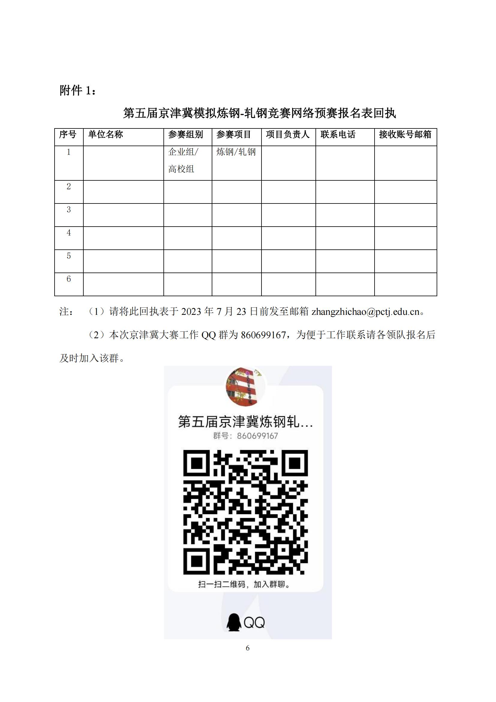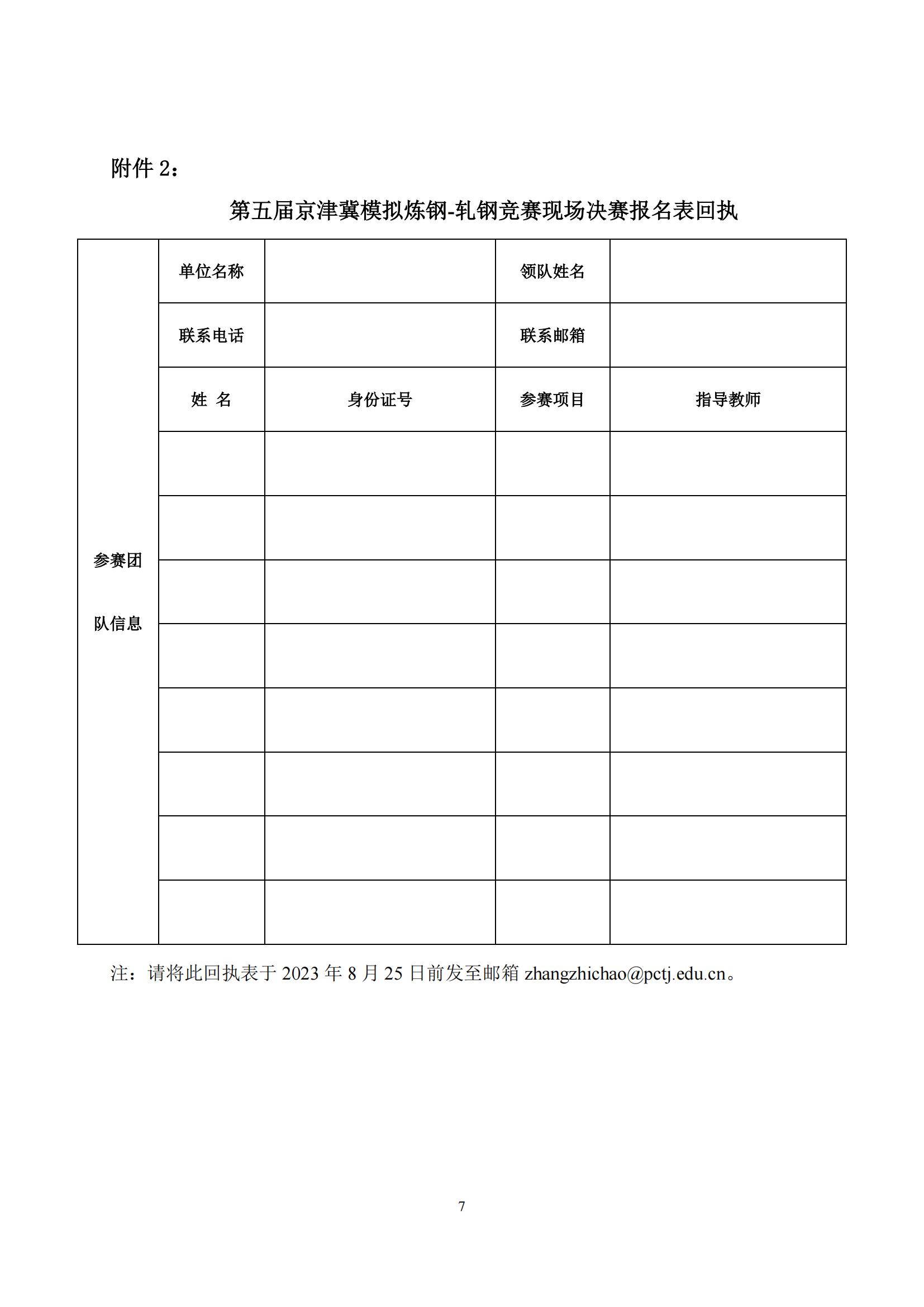 附件1:第五届京津冀模拟炼钢-轧钢竞赛网络预赛报名表回执