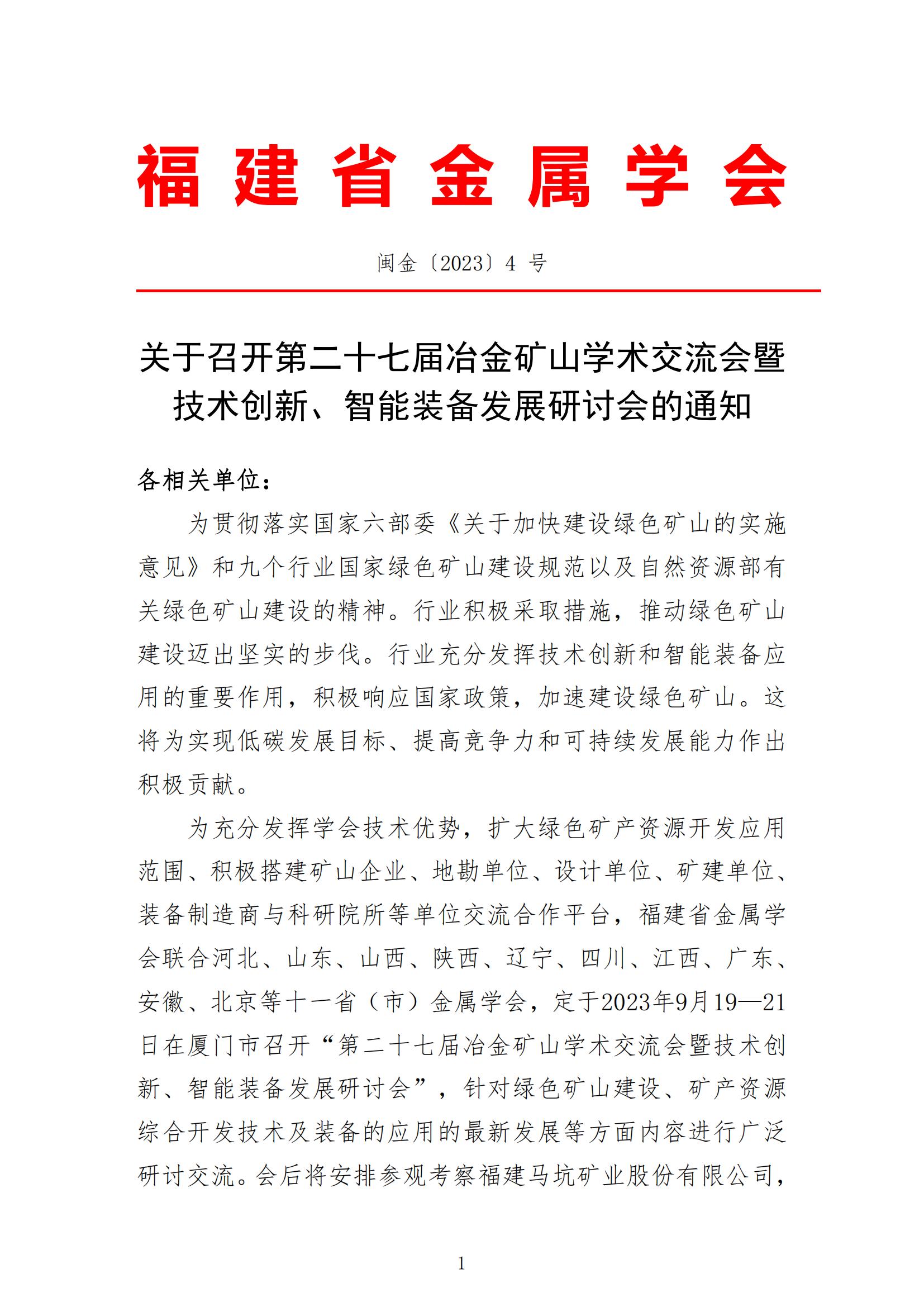 如需下载,请点击:第二十七届冶金矿山学术研讨会暨技术创新、智能装备发展研讨会通知