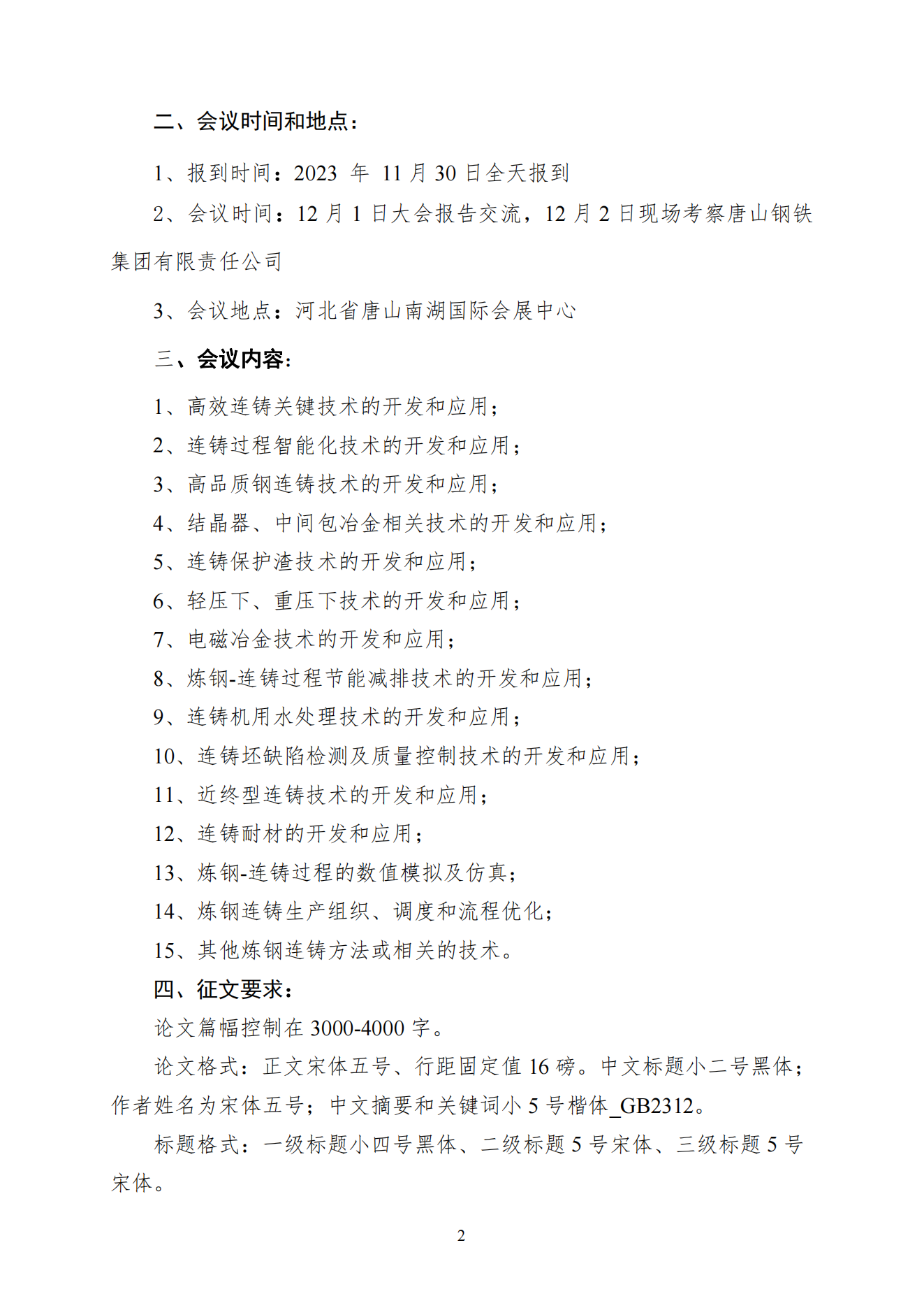 如需下载,请点击:冀金字[2023]42号第五届高效连铸技术研讨会通知