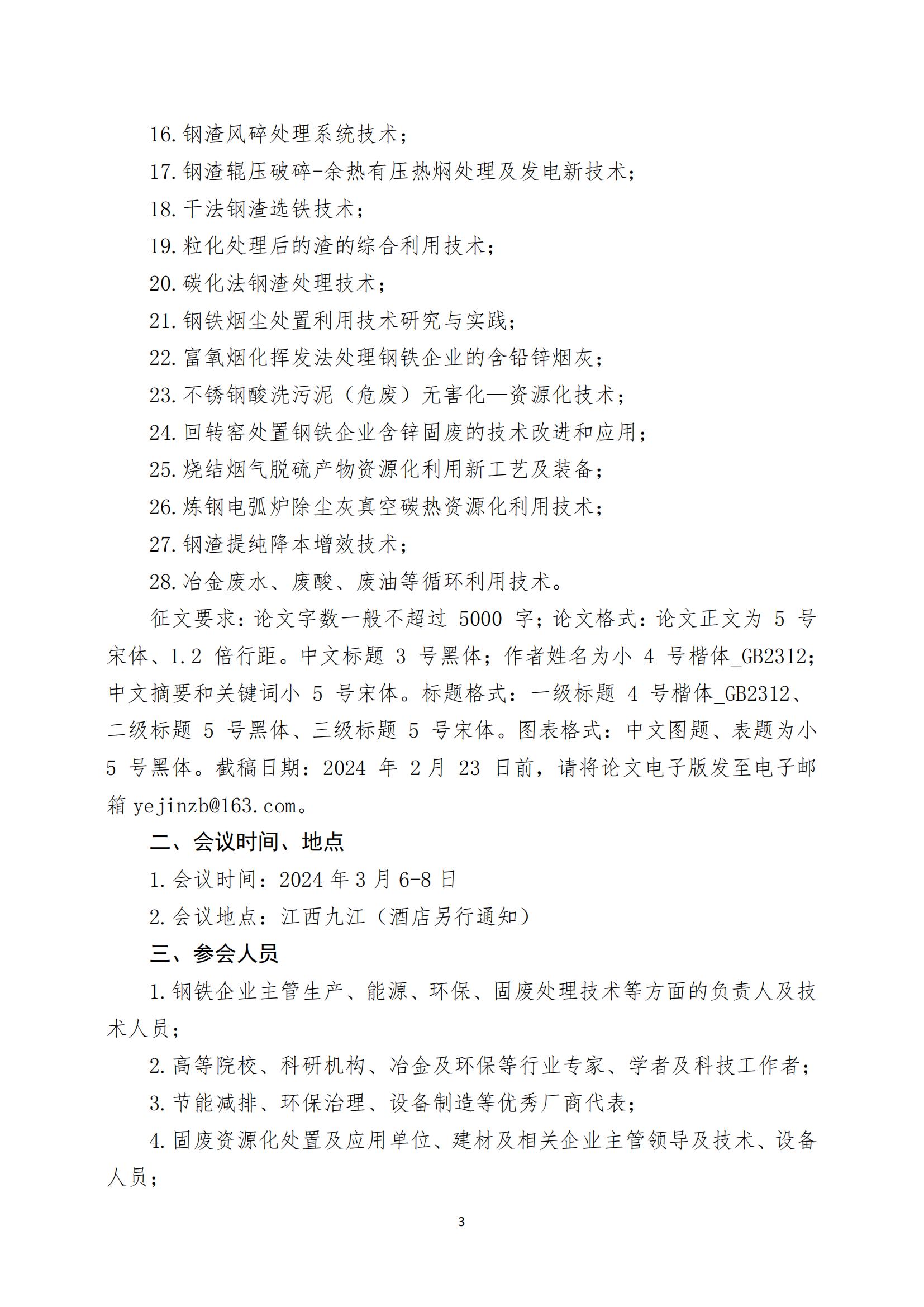 如需下载,请点击:冀金字[2024]1号关于召开“第八届冶金固废资源化处理与综合利用高峰论坛“的通知