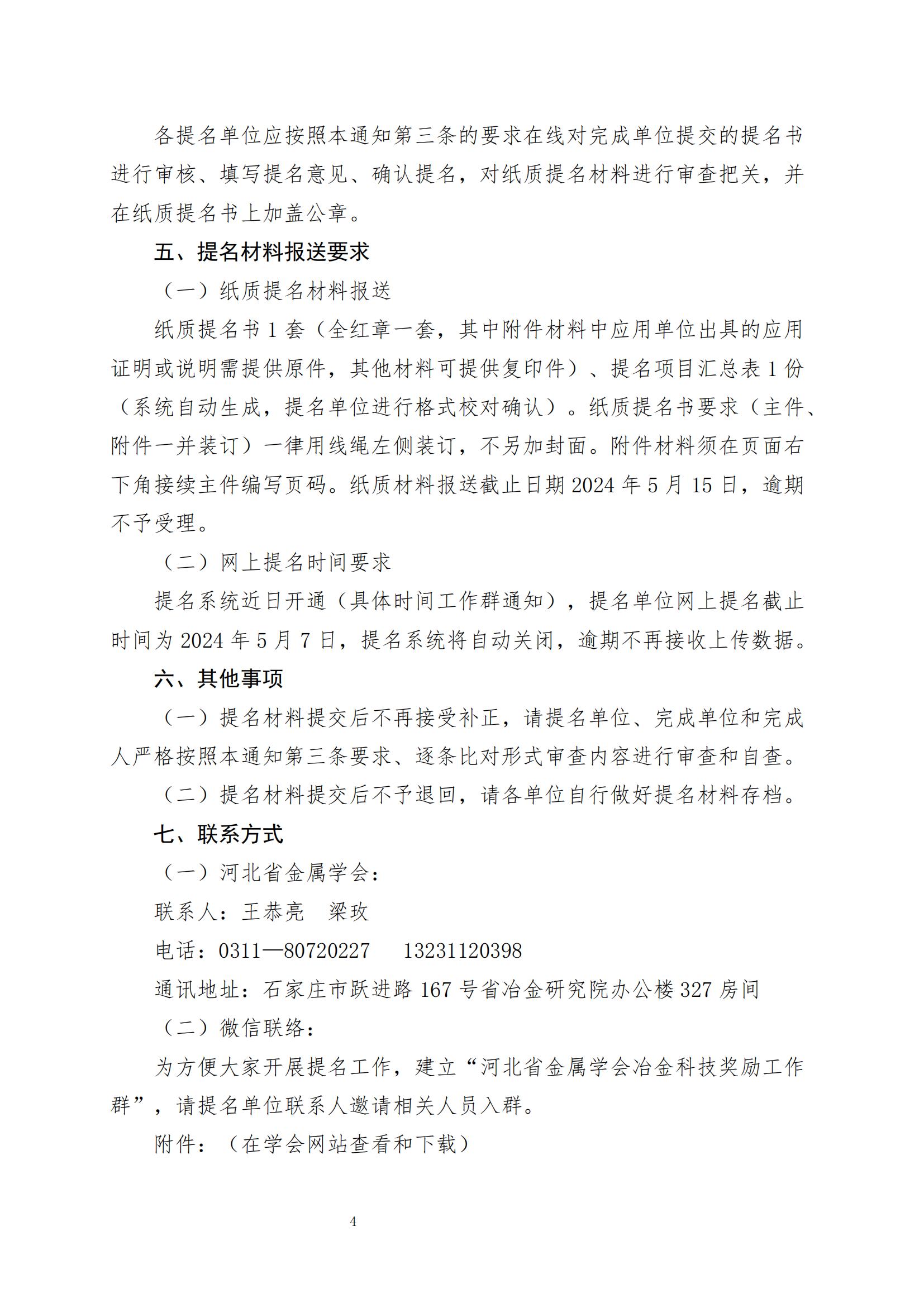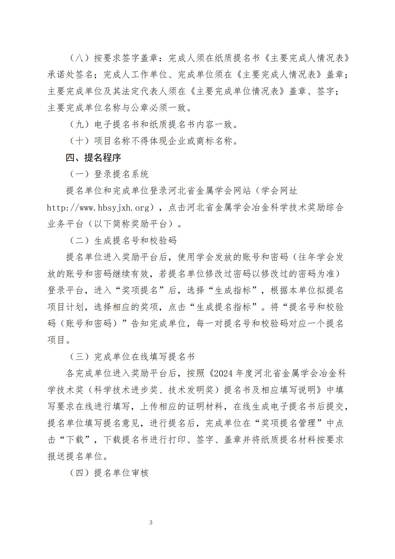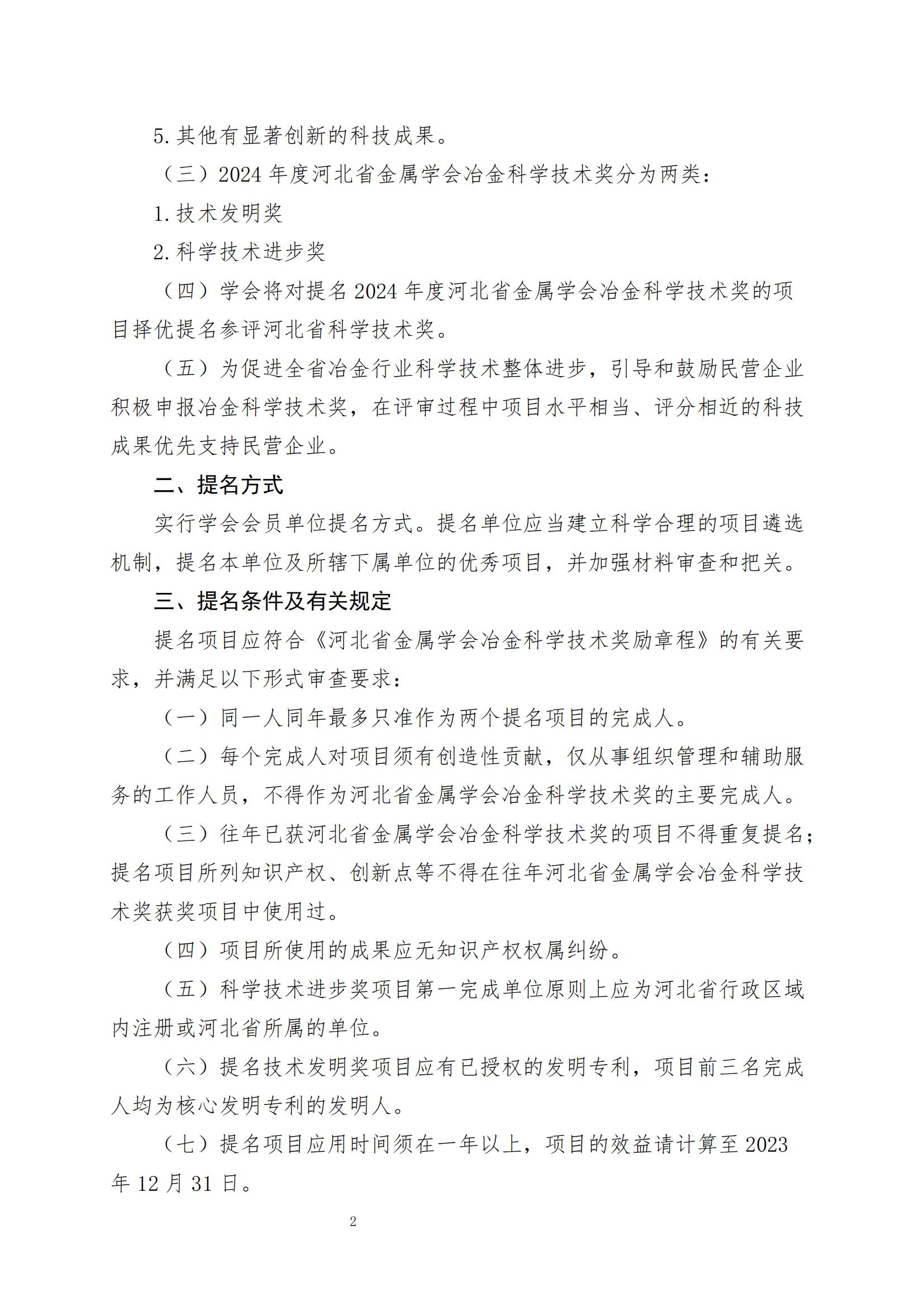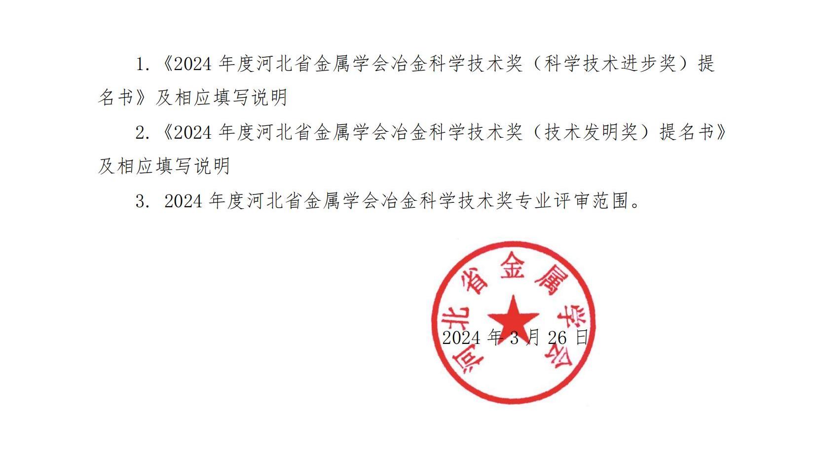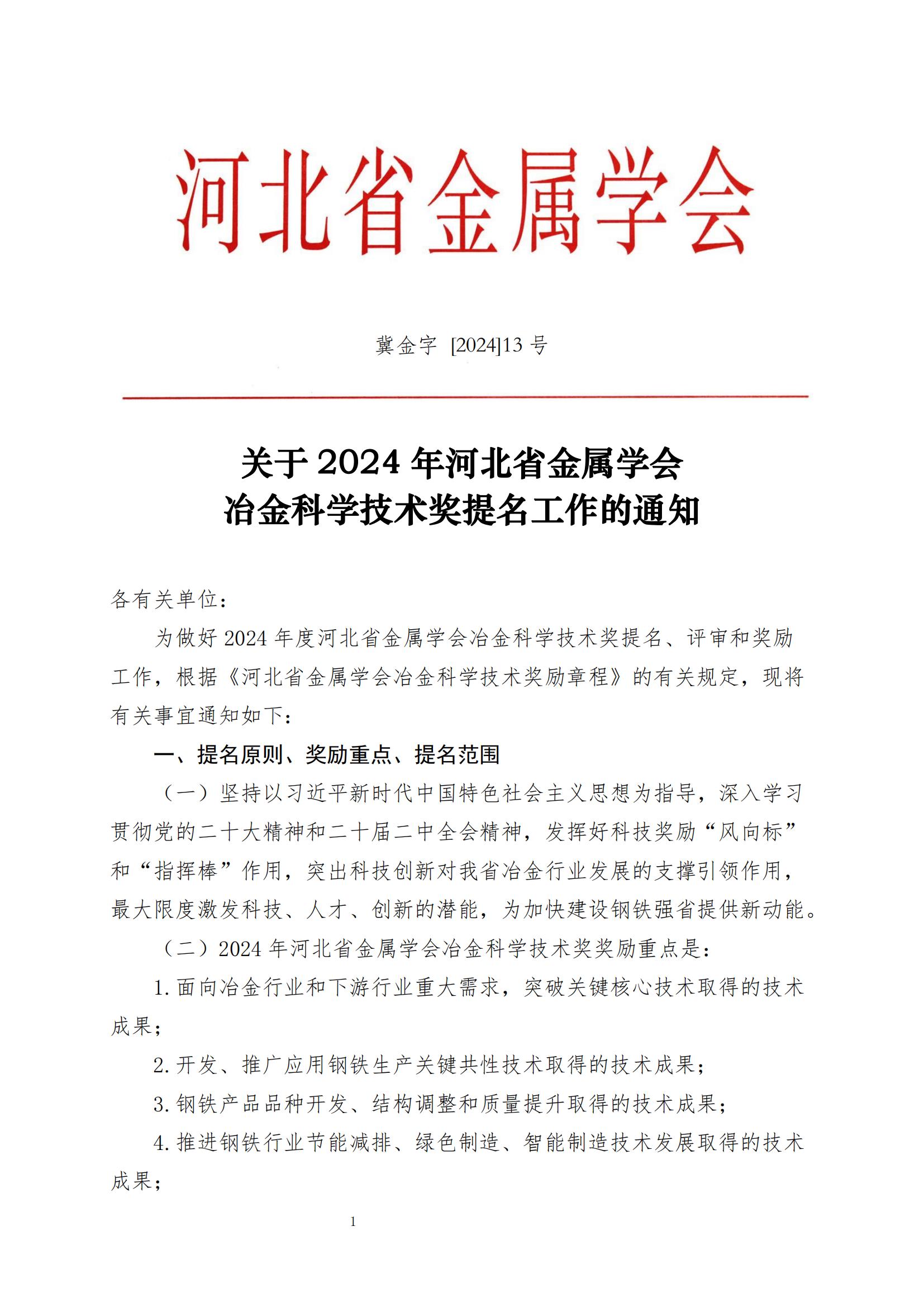 冀金字[2024]13号关于2024年河北省金属学会冶金科学技术奖提名工作的通知