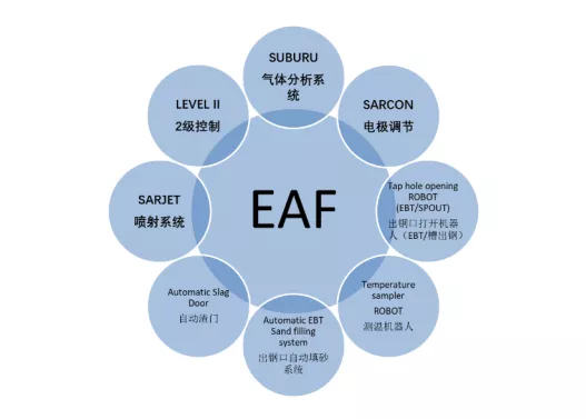 基于工业4.0系统,萨拉冶计划对其进行第一次系统合成,此次集成主要将SARCON电极调节系统,SUBURU气体分析系统,SARJET喷射系统和L2二级控制进行集成。通过数据采集数据收集处理,再通过L2控制系统进行自学习,可以实现在没有人工直接干预的情况下进行工艺智能化管理和控制。可以确保冶炼工艺的稳定、可靠和灵活性,便于适应冶炼工艺中的任何变化。