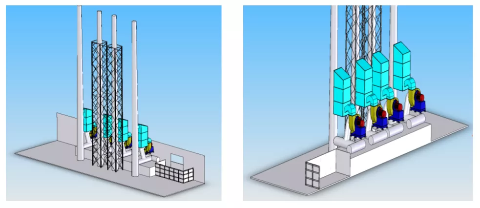系统占地面积是干法的三分之一左右,是湿法脱硫的二分之一,能够有效解决热风炉和加热炉设备布置紧凑、空间位置不足的难题。和传统湿法脱硫相比较,常规脱硫塔的塔体高度在35米左右,本系统的塔体高度不超过15米。