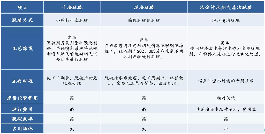 冶金行业较为成熟脱硫主要技术有干法SDS、干法活性焦、半干法、和湿法烟气脱硫,主要问题如下:
