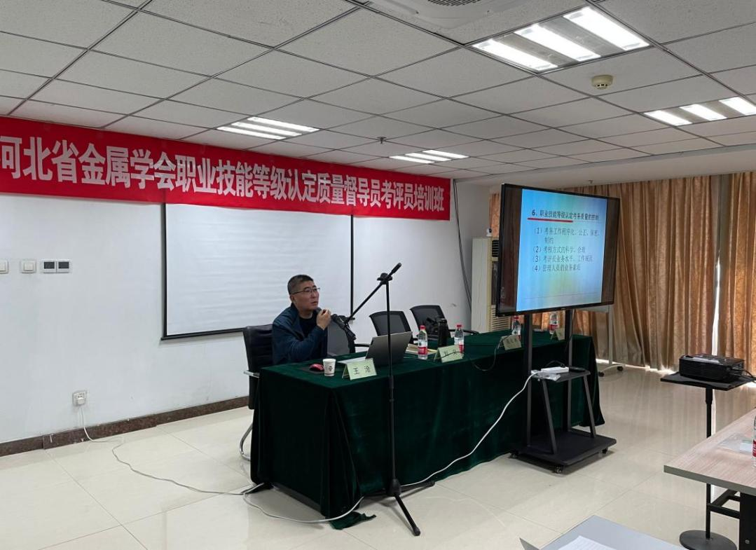 为了加强职业技能等级认定质量管控,建设一支高水平内部质量督导员、考评员人才队伍,更好地适应职业技能等级认定工作新形势的需要,经河北省职业技能鉴定指导中心批准,河北省金属学会于2021年4月7日在唐山市举办了职业技能等级认定内部质量督导员、考评员培训班,唐山市职业技能鉴定指导中心苑化冰副主任、唐山市劳动技师学院刘勇处长莅临现场授课。