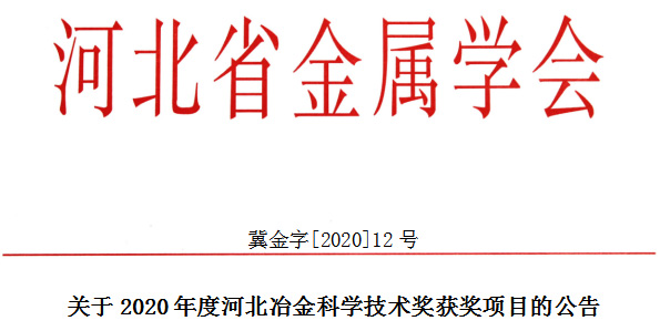 关于2020年度河北冶金科学技术奖获奖项目的公告