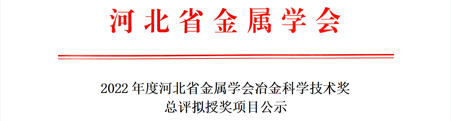 2022年度河北省金属学会冶金科学技术奖总评拟授奖项目公示
