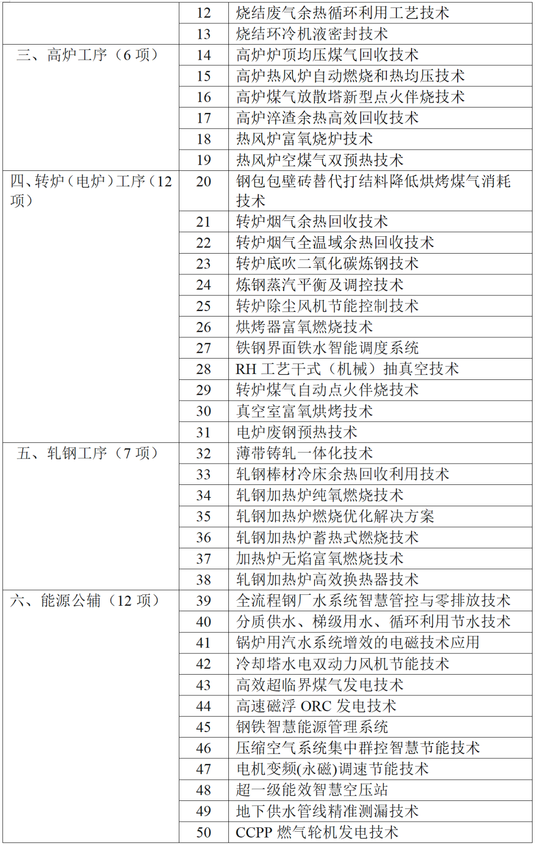这份技术清单是先经钢协会员单位、社会各界推荐74项技术,钢协组织专家对技术进行评估,筛选出54项;在此基础上,汇总企业等机构推荐的近百项技术,合并形成118项技术清单初稿;之后由钢协环保节能委员会再次组织行业专家进行评选,最后精选出50项技术而产生。