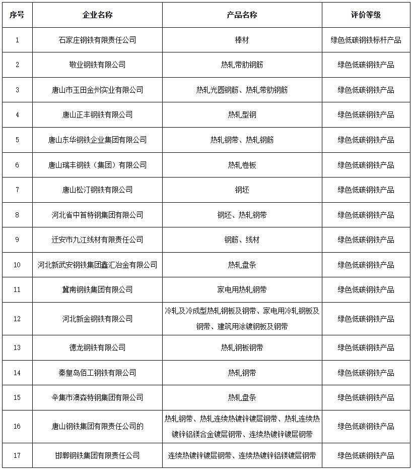 河北省工信厅发布第一批“河北绿钢”产品目录