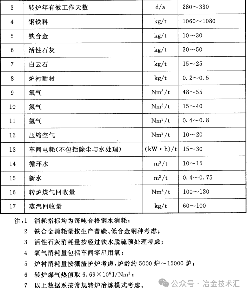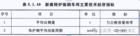 1.10  新建转炉炼钢车间主要技术经济指标宜按表 5.1.10 确定。