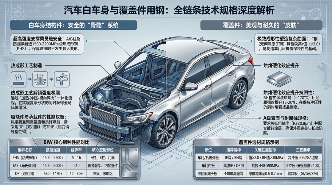 点击右标题,阅读原文。《汽车用钢 | 白车身与覆盖件用钢技术规格深度解析:性能、材料与工艺全链条对比》